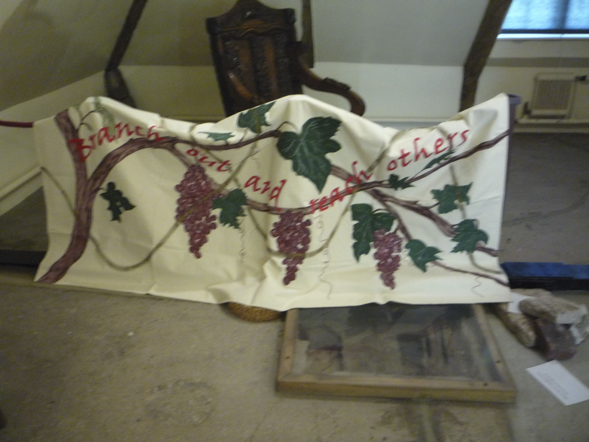 small banner made from a tea towel to mark the 10th anniversary of the Womens' Network