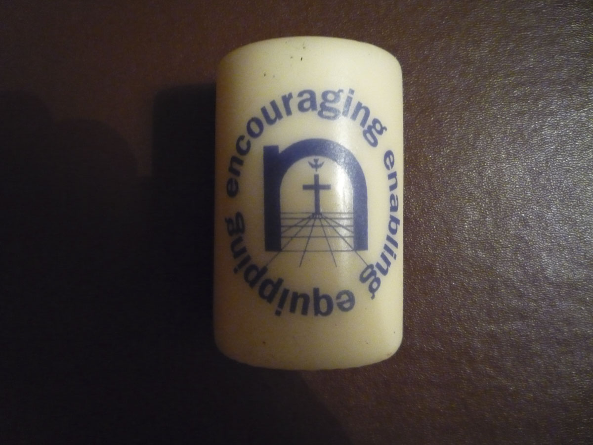 Accompanies brass candle stick (2000-016a). The snuffer is cone shaped with an L shaped hook.