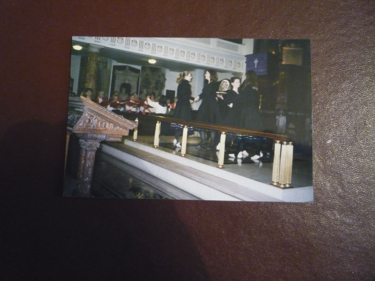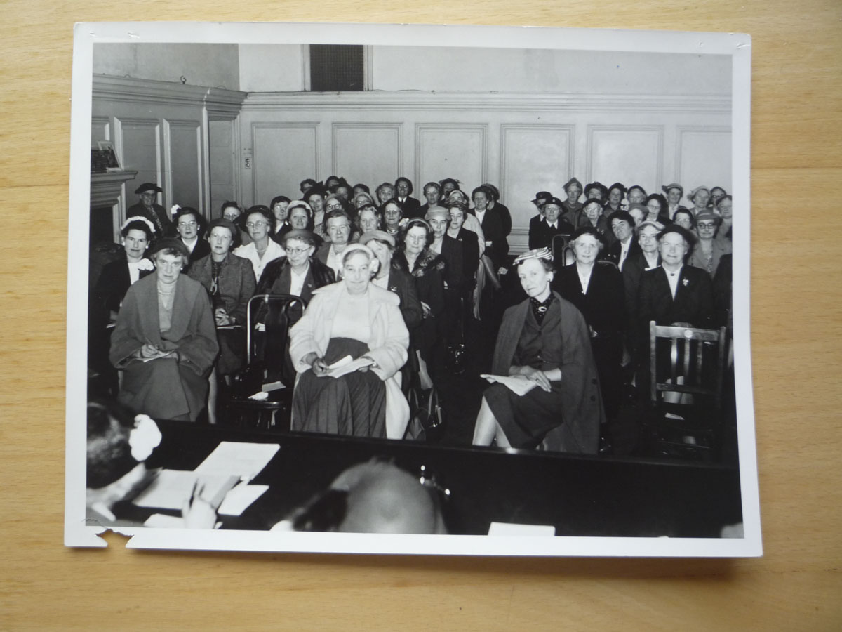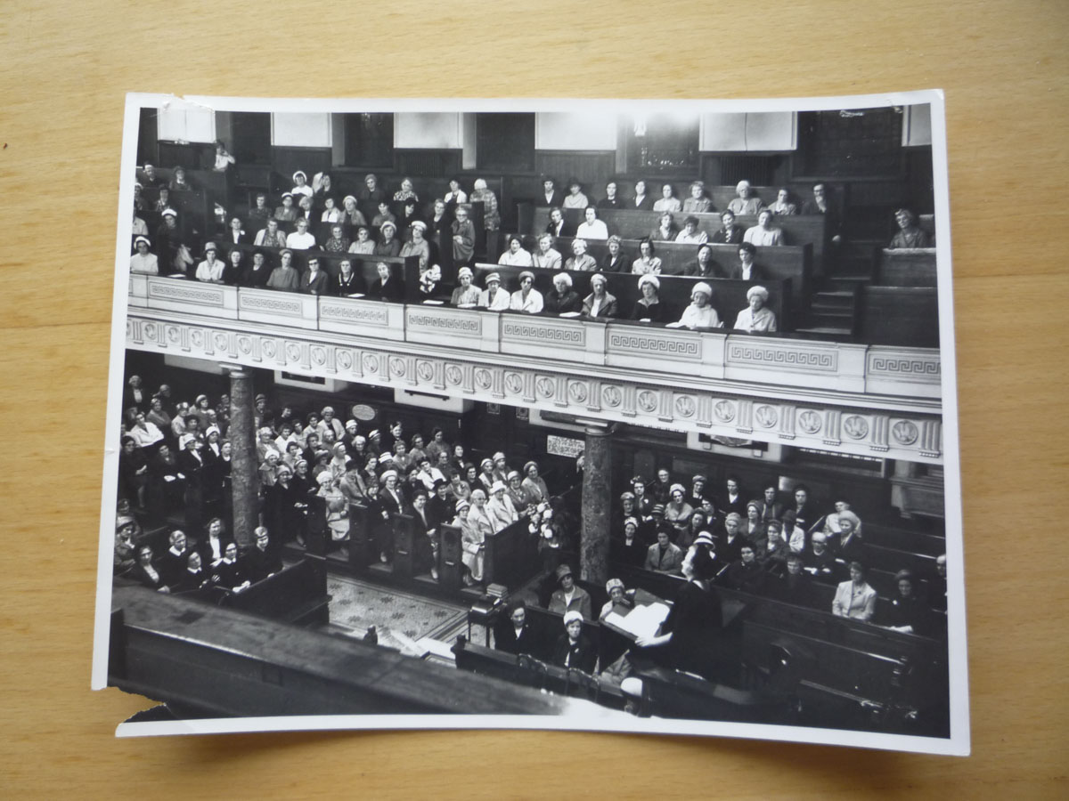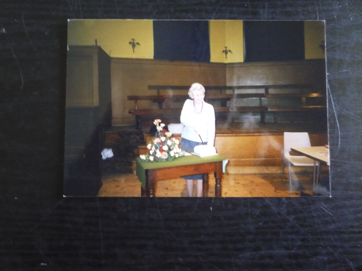 photograph of the interior of the old wesleyan chapel, chapel street, Epworth, now demolished; annotated en (sic) by Mr. Godfrey Hurst (Sandtoft)