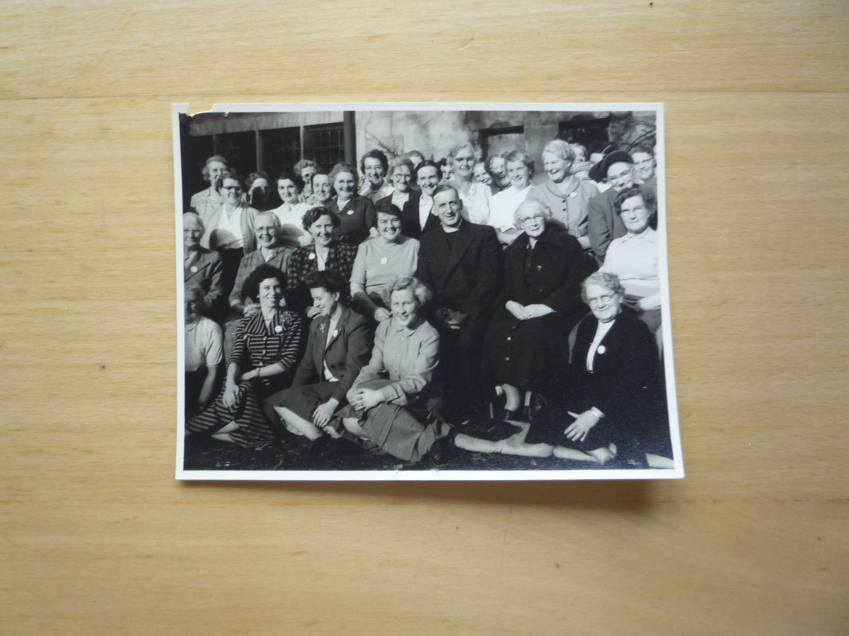 photograph showing some of the first pilgrims to Epworth, taken on the steps of the Memorial Chapel at Epworth July 22nd 1891