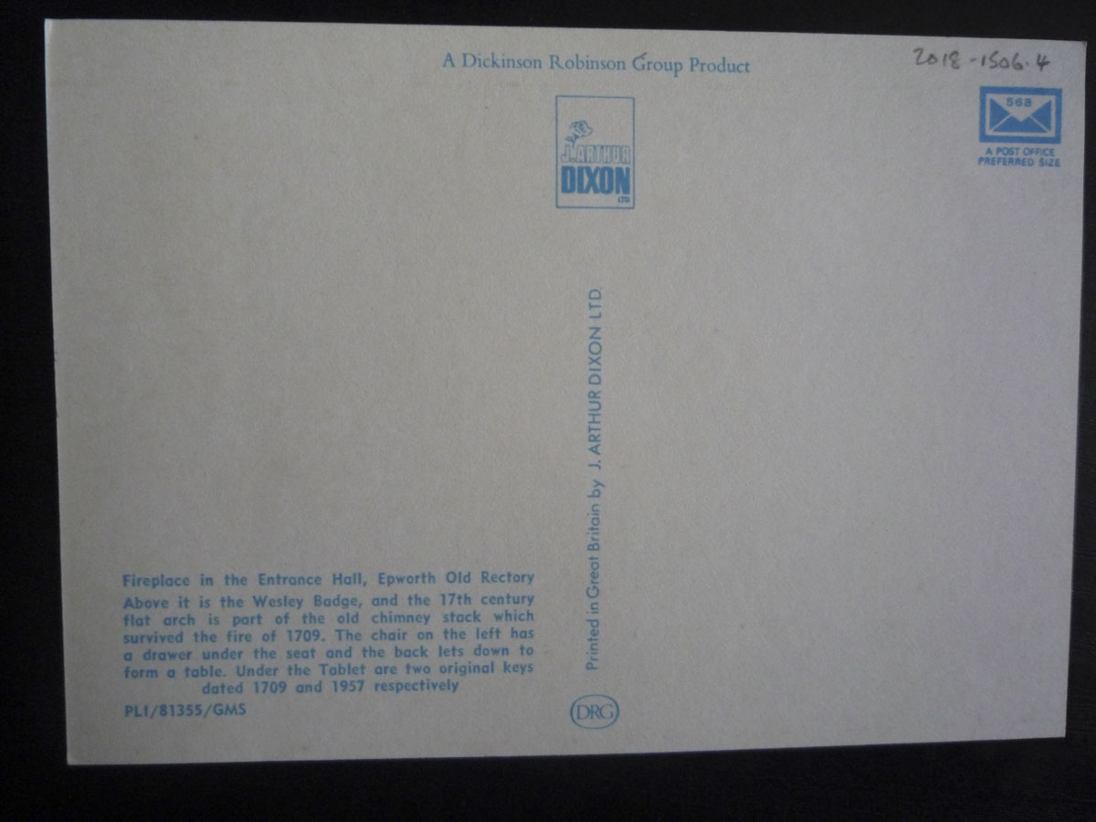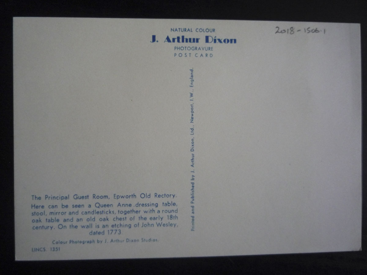 postcard - dated 1920 depicting Jeffrey's Chamb'r, Epworth Old Rectory