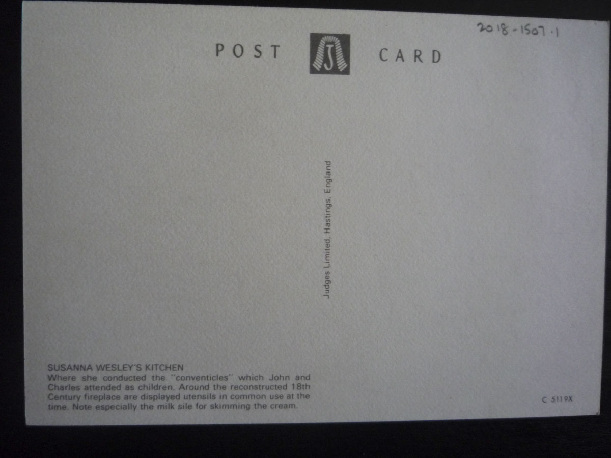 postcard (No. 1 of a set of 12, No. 6 missing) depicting John Wesley's Prayer Room, City Road London