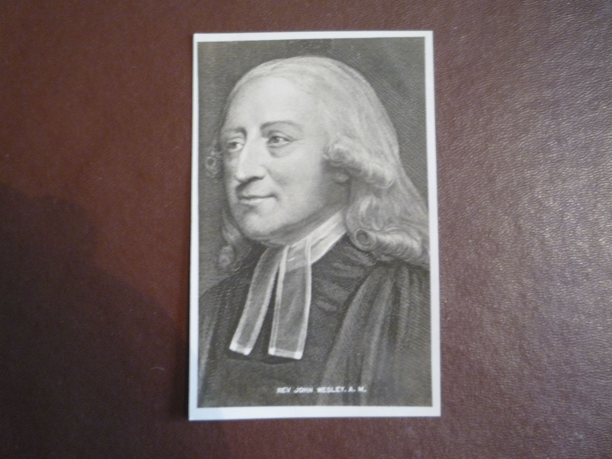 postcard - depicting John Wesley, a picture of Epworth Church and some biographical details