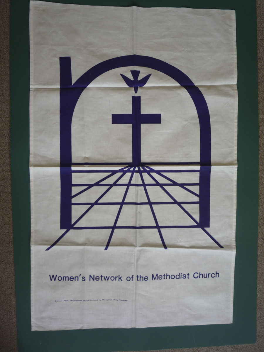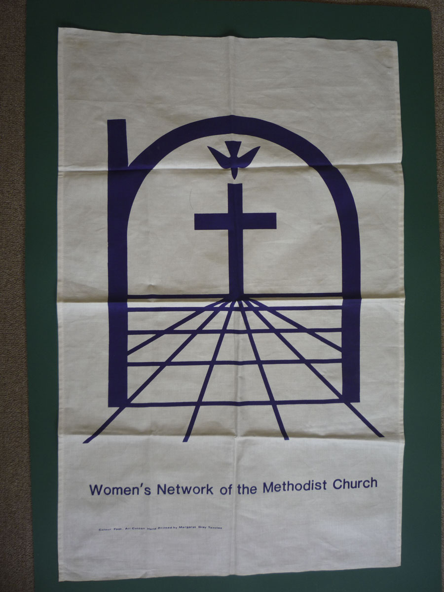 Ecru coloured linen tea towel with "cures" from John Wesley's Primitive Physic. 4 cures for a rupture,a cold in the head, a sore throat and a bruise printed in the...