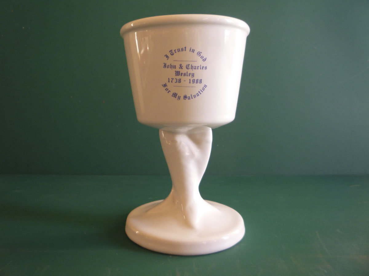 goblet with a transfer print of the memorial window on one side and an inscription on the other