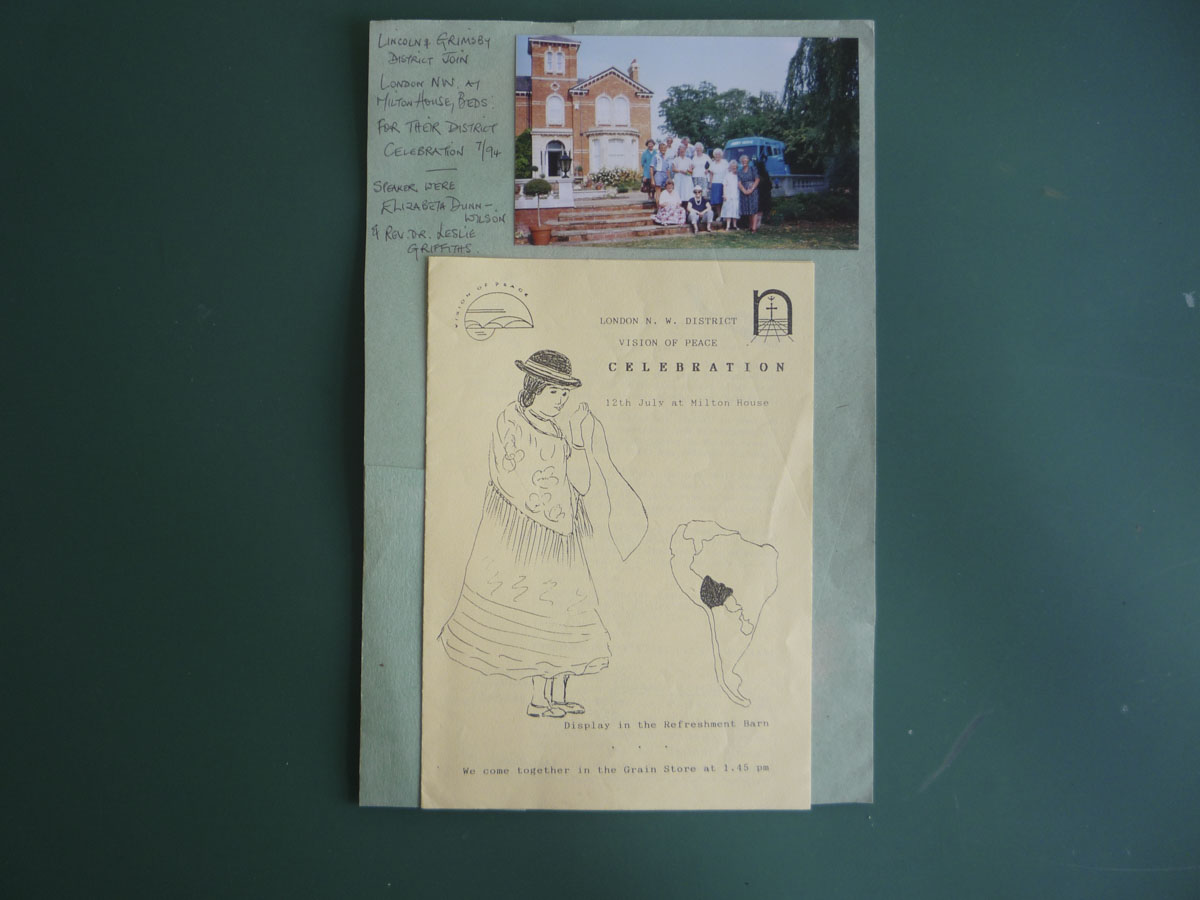 A4 card showing a photo and programme for when Lincoln and Grimsby joined with London NW for their District celebration.