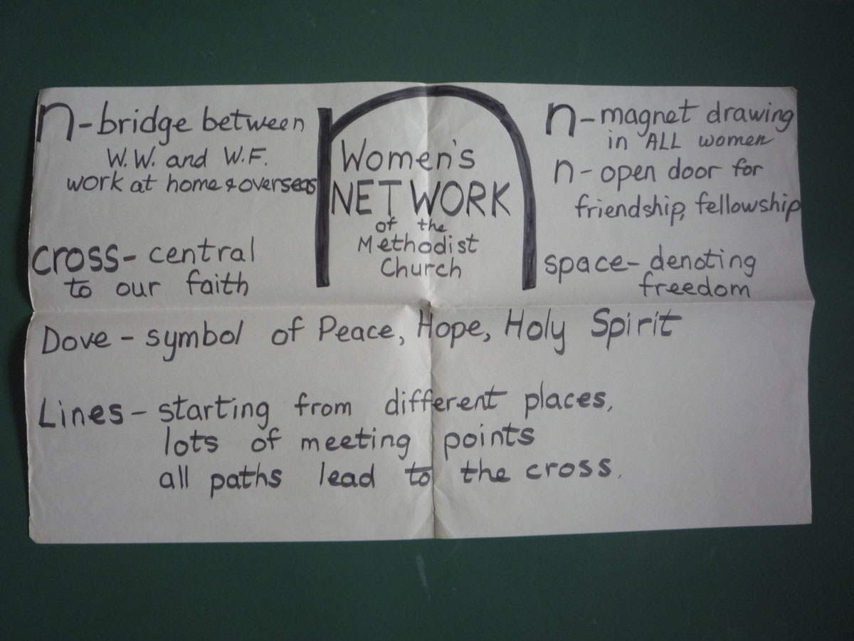 large sheet with Network logo on and key words about what the logo represents written around it in felt tip