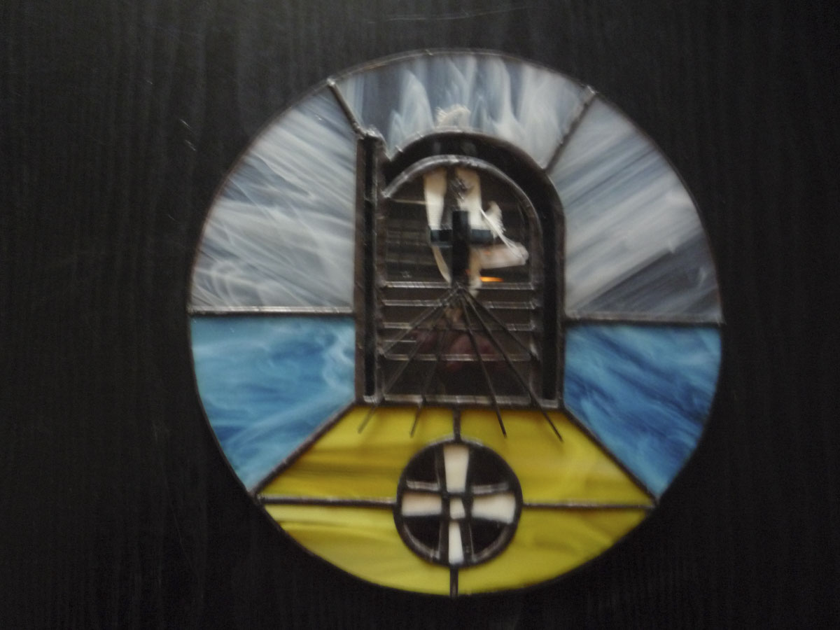 stained glass Network logo made for June Anderson for her Network presidential year by Rev. Peter Stringer