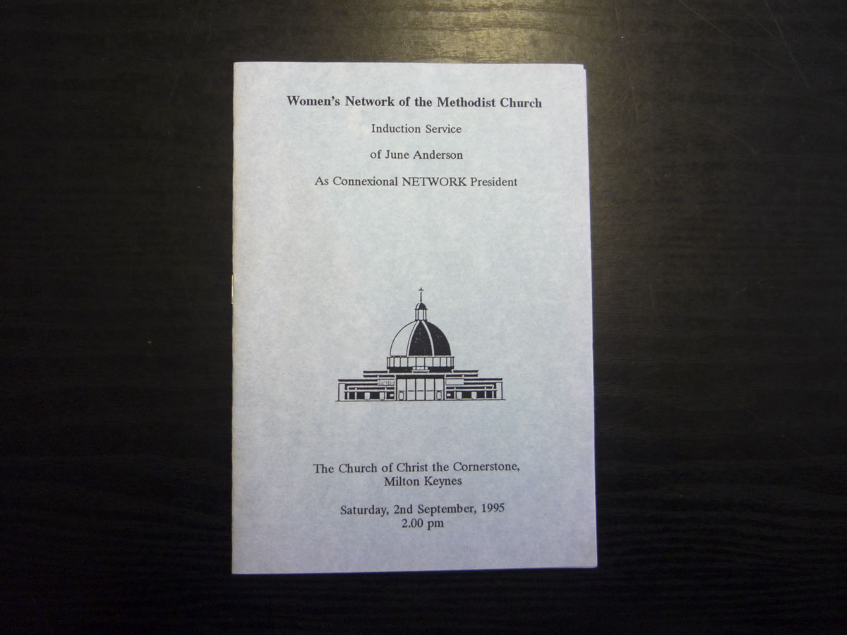 Order of Service induction of June Anderson as President of Network at the Church of Christ the Cornerstone, Milton Keynes, Saturday 2nd September 1995