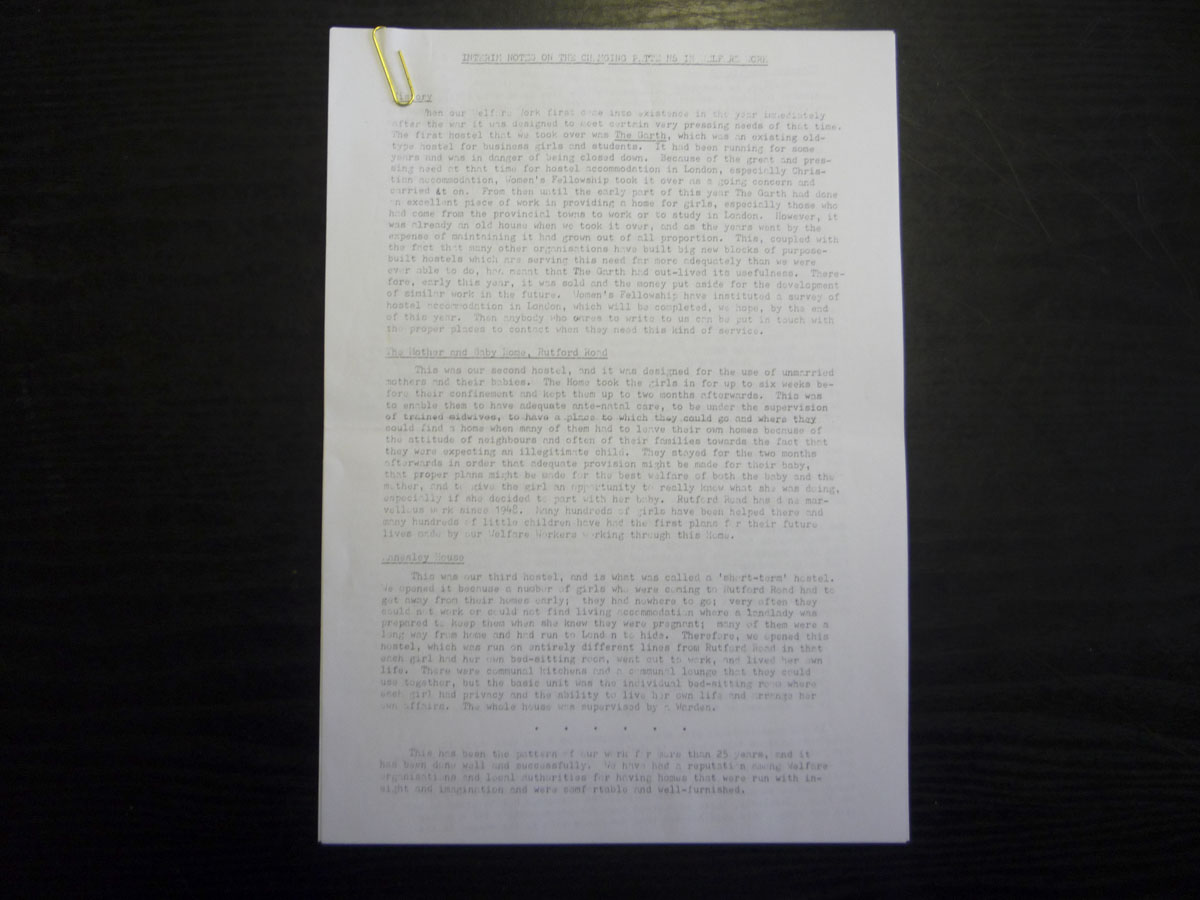 typed sheet entitled "Interim Notes on the Changing Patterns in Welfare Work"
