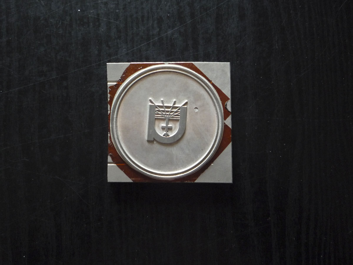 metal stamp of Network Logo within two circles, mounted on 85/87mm squared base