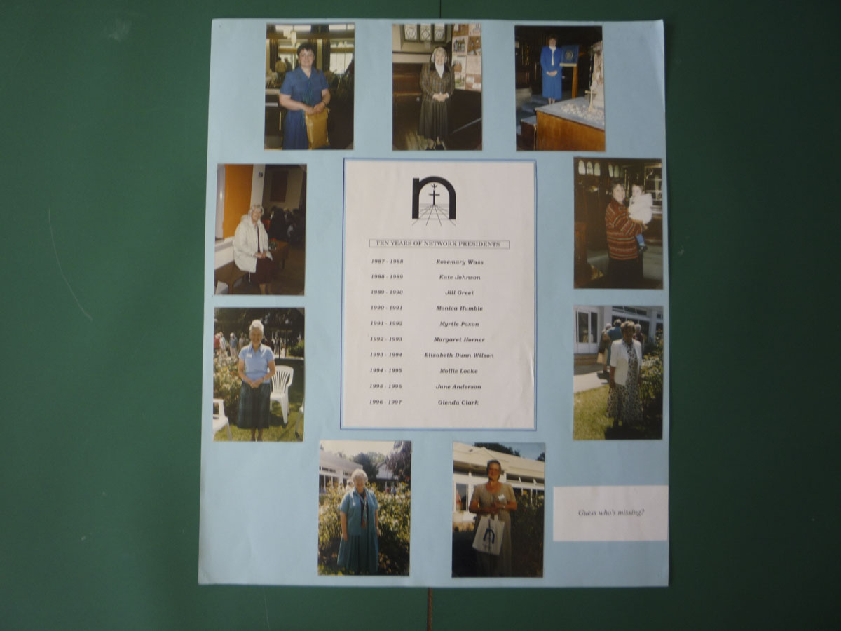 photographs affixed to card with some descriptive labels and a list of past presidents
