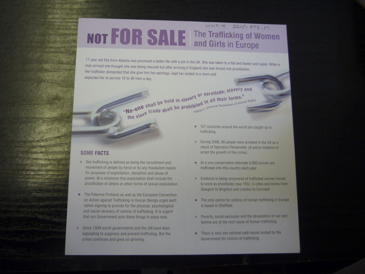 'Not for Sale: The Trafficking of Women and Girls in Europe' - leaflet produced by Women's Network