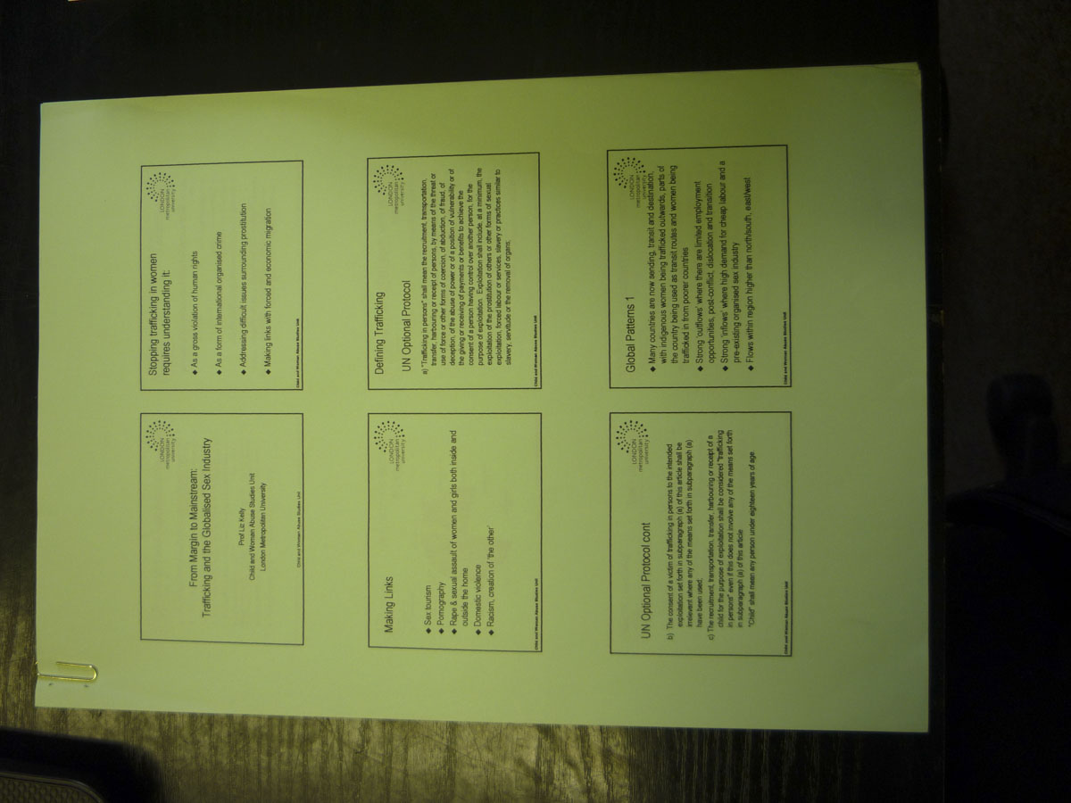 Printed copy of PowerPoint: 'From Margin to Mainstream: Trafficking and the Globalised Sex Industry'