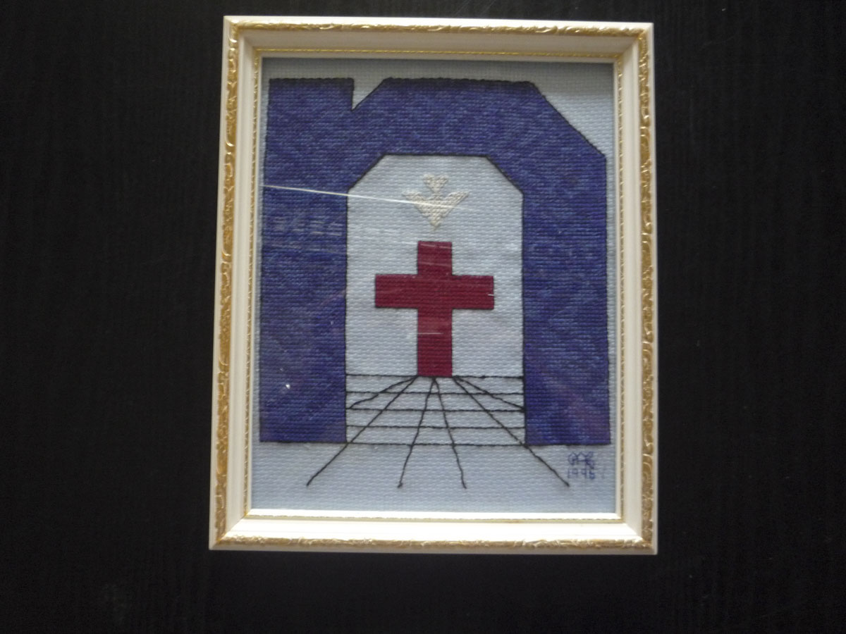 cross-stitched network logo in a frame