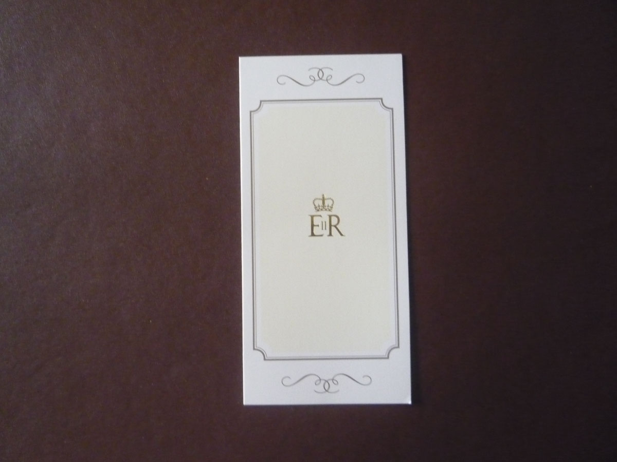 Card sent by Queen Elizabeth II's Office thanking MWiB for their kind words sent on the occasion of her 90th Birthday