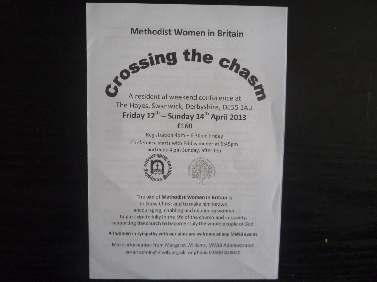 Leaflet advertising the residential weekend "Crossing the Chasm" at The Hayes, Swanwick