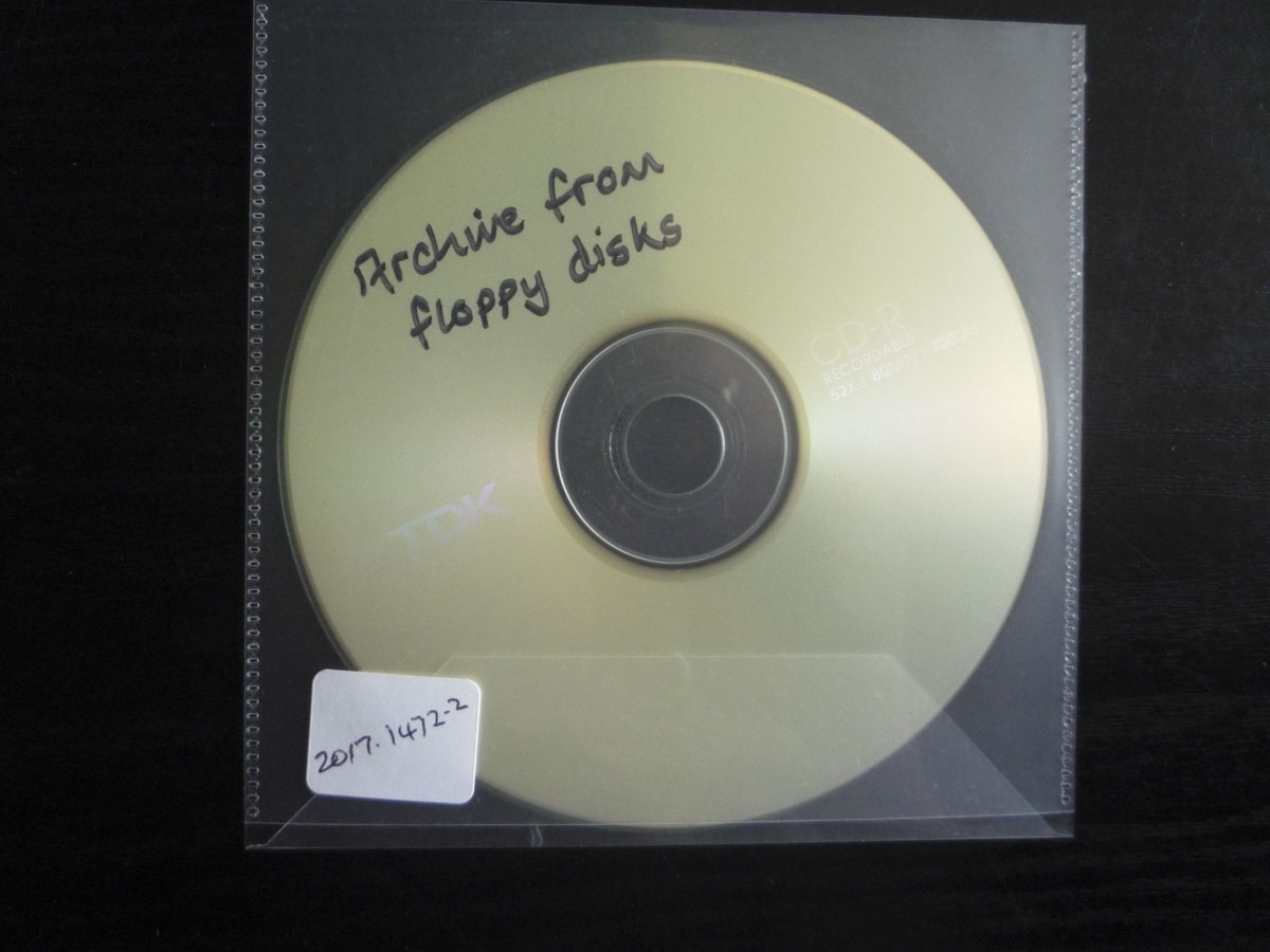 CD-R entitled "Archive from Floppy Disk" and containing an number of directories and additional files