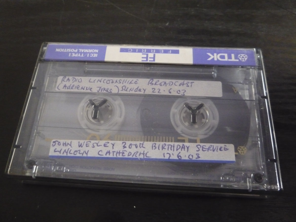 Cassette Tape of Lincoln Cathedral from 17/6/2003 broadcast by Radio Lincolnshire on 22/6/2003. Annotated "Lincs. Radio Broadcast (Adrienne Jones) Sunday 22/06.2003"