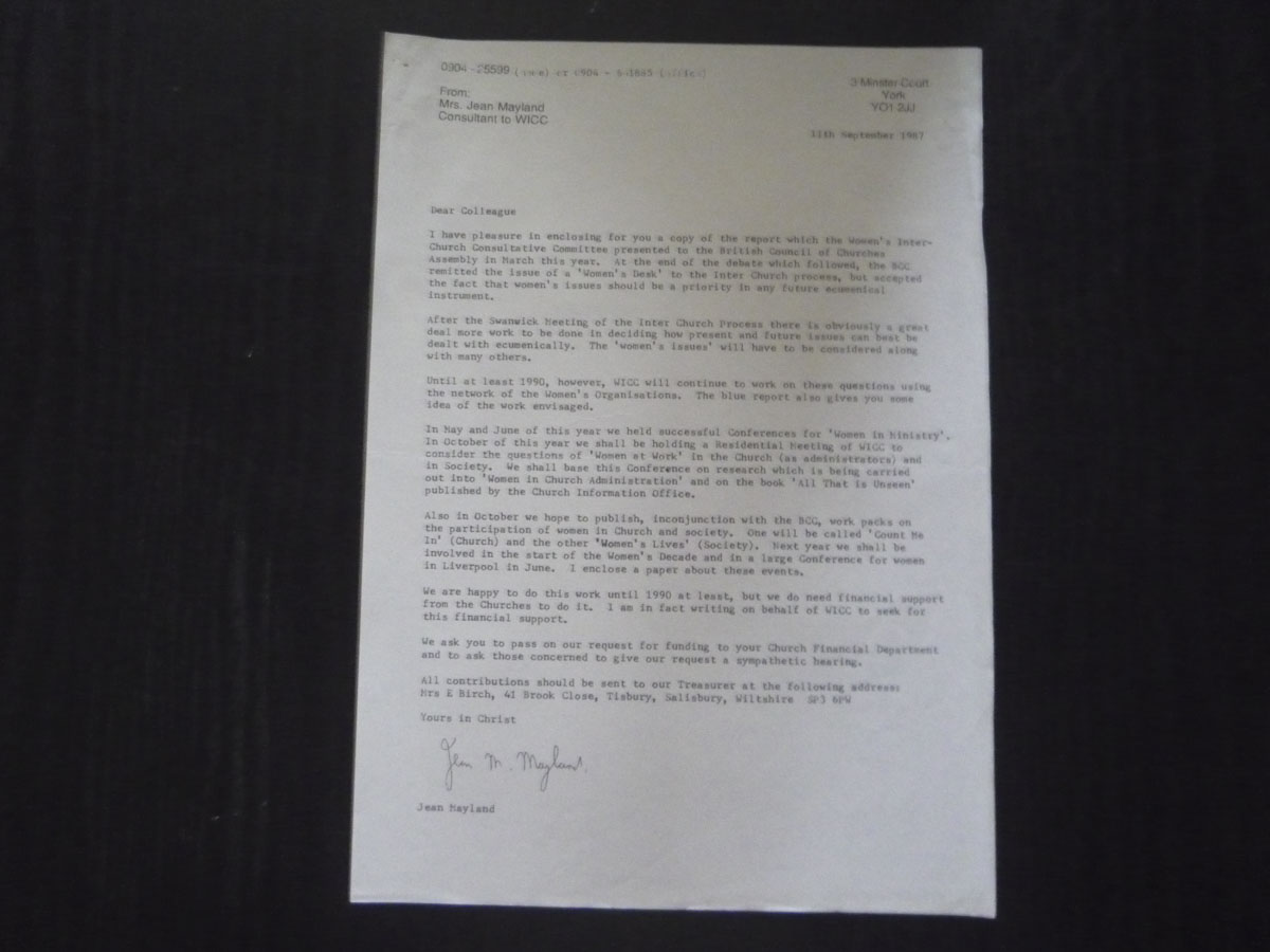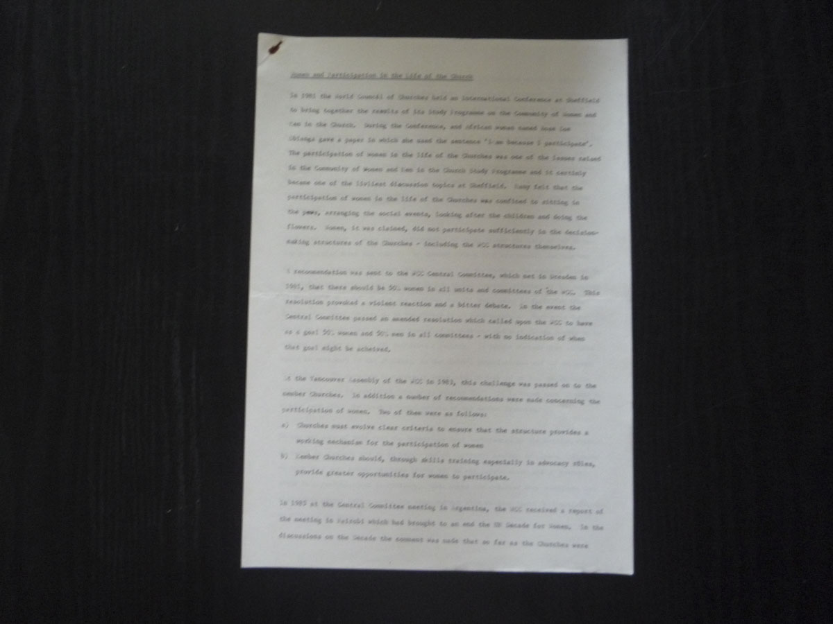 A5 Progress Report "Women's Inter-Church Consultative Committee 1987", with 3 inserts