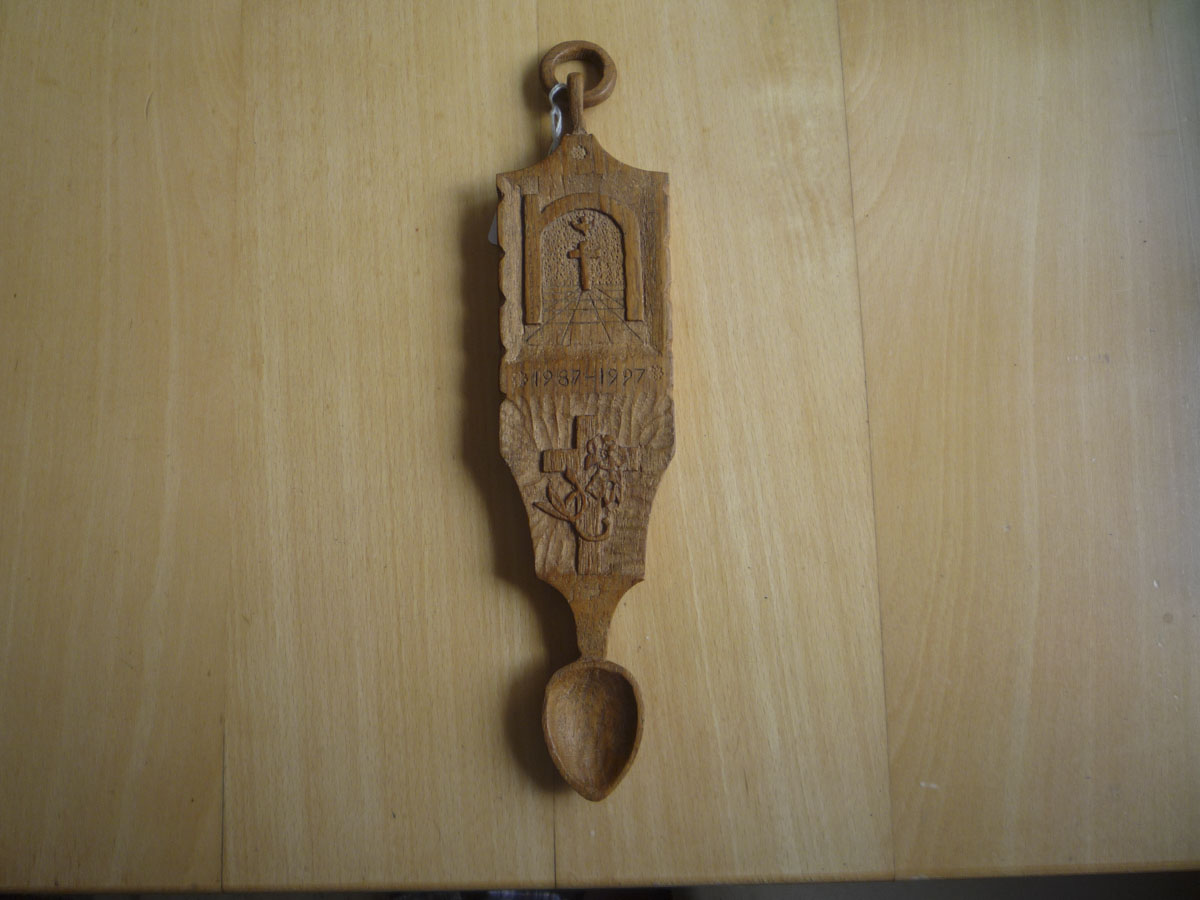 Welsh Wooden Lovespoon carved with the Network Logo and dated 1987-1997 to celebrate the 10th anniversary of Network, given to June Anderson by a Welsh Women's Group after her Presidency, 1997