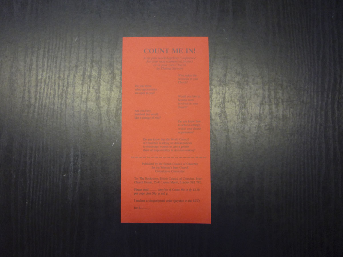 A collection of sundry items (magazines, reports, postcards etc) - DL Promotional Flyer "Count Me in" - a Workshop from the British Council of Churches