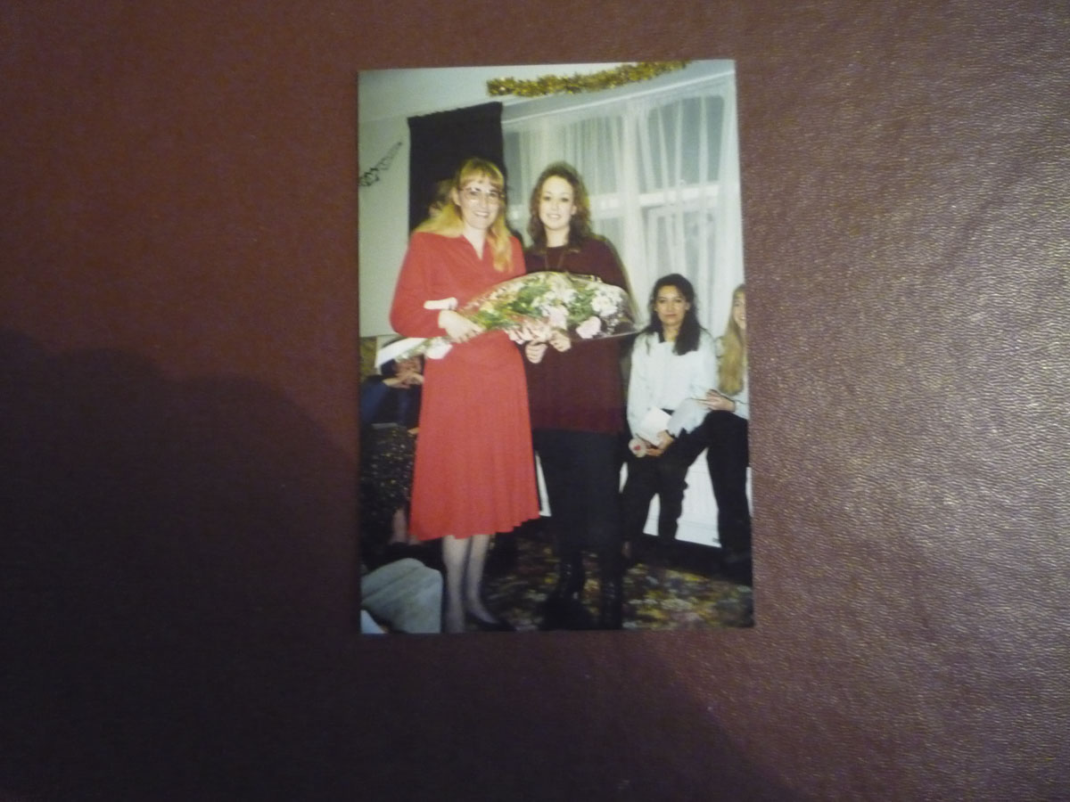 Items relating to Annesley House, c) Photographs of people and events at AH and its predecessors - loose photographs - Sue Dodd with a bouquet and some of the Annesley House Residents